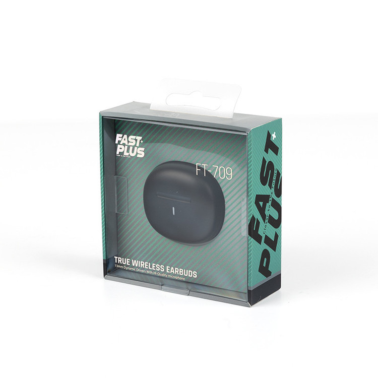 ایرفون های هندزفری بلوتوث FT-709 فست پلاس به صورت Semi In-Ear است که به شکل کامل درون گوش جای میگیرند و به محض اینکه آنها را درون گوش خود میگذارید، کم شدن نویز و صداهای اضافی محیط را متوجه میشوید. ایرفون ها وزن بسیارکمی دارند که باعث شده تا در طولانی مدت امکان استفاده از آن را داشته باشید و کمتر خسته شوید. هندزفری فست پلاس FT-709 دارای بلوتوث نسخه 5.1 است. با استفاده از این هندزفری می توان تا فاصله ده متری (بدون هیچ مانعی) بدون افت کیفیت به موسیقی گوش داد. از دیگر قابلیتهای بلوتوث نسخه 5.1 اتصال پایدارتر است. اگر گوشی شما نیز دارای نسخه 5.1 بلوتوث باشد، باتری استفاده شده از هندزفری و گوشی، کمتر خواهد بود. بر روی هندزفری FT-709 فست پلاس ، پنلهای لمسی قرار داده شده است که با لمس کردن این پنلها میتوانید کاربردهای مختلفی را که فست پلاس برای شما در نظر گرفته است انجام داده و در کل کاربری راحتتری داشته باشید. هندزفری بلوتوث FT-709 دارای باتری با ظرفیت 250 میلی آمپر ساعت است. میزان شارژدهی برای ایرفون های این هندزفری جهت شنیدن موسیقی 4 ساعت و مکالمه 3.5 ساعت می باشد.