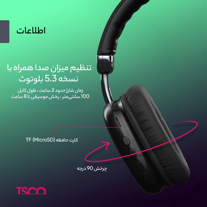 هدفون تسکو مدل 5378 علاوه بر حالت بلوتوثی، قابلیت استفاده از SD Card، کابل AUX و رادیو را نیز دارد. یکی از ویژگیهایی که در مورد این هدفون تسکو توجه را جلب میکند سبک طراحی ساده و کاربرپسند این محصول است. تل این هدفون به گونهای طراحی شده تا انعطافپذیری و قابلیت چرخش 90 درجهای داشته باشد و از استحکام بالایی نیز برخوردار است. نسخهای که این هدفون از آن پشتیبانی میکند ورژن 5.3 بوده و به سرعت به بلوتوث متصل خواهید شد. اما در هر لحظه که باتری هدفون شما تمام شود با کابل AUX به راحتی میتوانید کارخود را راه بیندازید. شما تا فاصله 10 متری از سیستم خود قابلیت اتصال به هدفون را داشته و بدون هیچگونه قطعی میتوانید موزیک گوش داده و لذت ببرید. با این هدفون علاوه بر پخش موسیقی و پادکست میتوانید از رادیو نیز استفاده کنید.